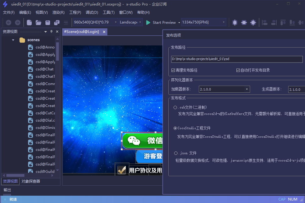 支持将CocosStudio2.x发布的